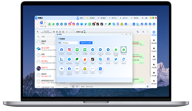 支持全球主流社交通讯软件在线实时精准翻译(可多开)支持全球200+语种。